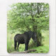 Une belle aquarelle de jument noir à l'ombre d'un arbre. Aquarelle. Pays de Galles Royaume-Uni.