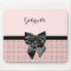 Tapis De Souris Chic Pois rose noir Bow et nom