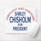 Cette reproduction est basée sur un bouton de 1972 campagnes pour Shirley Chisholm, la première femme afro-américaine pour fonctionner pour le président.