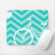 Coeur et bicyclette modernes Mousepad de Chevron. Une conception mignonne et lunatique comportant un chevron de bleu de turquoise a modelé l'arrière - plan avec un coeur blanc et la bicyclette blanche sur le dessus. Très moderne et à la mode.