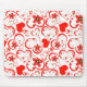 Tapis De Souris Cœurs rouges et fleurs sur fond blanc