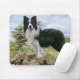 Awww ... Rien ne dit l'amour comme le visage doux et innocent d'un chien chiot de Border Collie. Ce mignon tapis de souris canine est muni d'une bordure noire et blanche Collie Pup fièrement posée sur un mur en pierre.