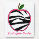 Un cadeau d'institutrice gardienne comportant une illustration d'une pomme d'impression de zèbre avec l'équilibre rose. Le texte rose sous la pomme indique la "institutrice gardienne." Recherchez cette conception sur d'autres articles à l'école rose.