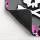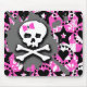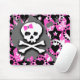 Cette publicité Emo Mouse Pad présente une image graphique d'art graphique avec un crâne et des os de peinture rose, noir, gris et blanc.