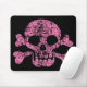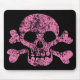 Ce crâne rose et ses os croisés ont une texture en mauvais état.