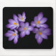 Ce beau mousepad est décoré d'un bouquet de six fleurs pourpres pâles sensibles de crocus avec les centres d'or réglés sur un arrière - plan noir pur. Quand les crocus fleurissent, nous savons que le ressort est ici !