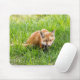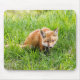 Cet adorable petit renard rouge (kit) est installé dans une grande pelouse à l'extérieur de sa tanière.