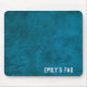 Police de nom gris argent sur arrière - plan en cuir violet. Le nom est modifiable ou peut être supprimé.