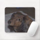 Un mousepad avec une photo d'un Dachshund aux cheveux longs.