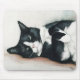 Ce tapis de souris comporte une reproduction de mon dessin au crayon coloré par original d'un chat de smoking.