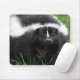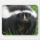 Conception noire et blanche de photo de mouffette dans l'herbe sur des cadeaux.