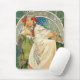 Tapis de souris de princesse Hyacinth d'Alphonse Mucha. Affiche de lithographie à partir de 1911. L'artiste tchèque Alphonse Mucha a créé certaines des annonces et des affiches les plus magnifiques de la période de nouveau d'art. Princesse Hyacinth est un travail comportant une belle fille utilisant une couronne en cristal avec les fleurs rouges dans ses cheveux. La femme tient un flocon de neige en cristal et s'assied dans une robe crème. Derrière elle l'affiche est ornementée avec un motif complexe des étoiles, des couronnes, et d'autres formes. Au-dessus de lit le texte "Princesna Hyacinta." Un beau cadeau pour des fans d'Alphonse Mucha, nouveau d'art, et posters vintage et annonces.
