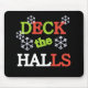 Le texte rouge, vert et blanc avec des flocons de neige blancs dit "Deck the Halls" sur les T-shirts, sacs fourre-tout, tasses, magnets, et plus encore.