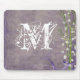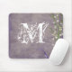 Fleur blanche personnalisée Floral Pays gris dentelle rustique ruban violet Monogramme initial Pad de souris personnalisée