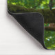 Photo d'un robin perché sur une branche d'arbre recouverte de mousse dans une forêt. L'oiseau est de retour à la caméra et il a l'air droit. De jeunes arbres dans l'arrière - plan portent des feuilles d'été, et le ciel bleu est vu dans les quelques ouvertures entre feuilles et branches. Copyright ©2021 Kimberly J Tilley.