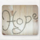 Un tapis de souris avec une image du mot "ESPOIR" a défini avec la corde sur un arrière - plan en bois.
