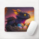 Cette mousepade a un dragon avec des oeufs sur elle.