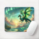 Un majestueux dragon vert s'envole à travers un ciel mystique rempli de nuages, laissant une trace de lumière brillante.