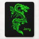 Beau tapis de souris noir avec un cool semblant le dragon vert clair de style chinois. Personnalisez le nom en texte vert à quelque chose que vous voulez. Transforme un grand cadeau pour n'importe qui en imaginaire et dragons. Venez dans un dragon bleu également, le lien ci-dessous.