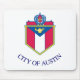 Mousepad avec le drapeau d'Austin, Texas. Un drapeau blanc avec les armoiries de la ville au centre