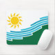 Mousepad avec un design avec le drapeau de Spokane, Washington. Un drapeau blanc et vert aux lignes bleues symbolisant la rivière Spokane et les chutes Spokane et un soleil jaune
