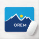 Mousepad avec un design avec le drapeau d'Orem, Utah. Un drapeau bleu, blanc et jaune avec des sommets de montagne et le soleil au centre