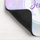 Tapis souris avec un beau motif abstrait. Le violet, le rose et le blues mélangent, mélangent et coulent ensemble pour créer un design abstrait d'aquarelle élégant et magnifique. Un cercle blanc superposé avec votre nom et votre monogramme initial.