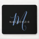 Élégant Noir Noir Script Monogramme Pad Souris. Un élégant monogramme de script bleu combiné à une police blanche de san-serif propre donne un look contemporain.