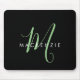 Tapis De Souris Élégant Monogramme moderne noir vert Script