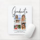 Élégant Script Multi Photo Graduation Graduate Mouse Pad comprend cinq de vos photos préférées de votre diplôme d'études supérieures ou secondaires avec le script tourbillonnant moderne de calligraphie noire superposition "Graduate". Simple, élégant et classe. Créé par ©Evco Studio www.zazzle.com/store/evcostudio