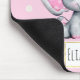 Une bouche sepad avec une jolie photo d'aquarelle d'éléphant rose. Elle a de jolies oreilles de points de polka roses et blanches et un joli ruban rose sur sa tête.