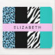Tapis De Souris Empreinte de léopard, Zebra Print, Bleu, Votre nom