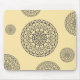 Un mandala en forme de dentelle en cercle concentrique en bleu foncé avec des points bleu vif et dorés comme des étoiles, frangés entre les couches, crée un design amusant qui rappelle un ciel étoilé étoilé.