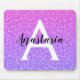 La parties scintillant violette à l'ombre de Girly et de glam scintille le nom monogramme et le pavé initial de la souris. Personnalisez avec votre nom personnalisé en noir et votre monogramme initial en blanc. Vous pouvez modifier la couleur du texte, le style et la taille de police à l'aide de l'option personnaliser.