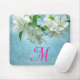 Fleur blanche Profonde Bleu Ciel Floral Pays Monogramme Première Souris Pad Personnalisé