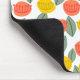 Ce tapis de souris a un design scandinave de fleurs et de feuilles éparpillés dans le corail, l'or, et le vert sauge.