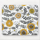 Tapis De Souris Fleurs de gribouillis et feuilles en jaune et noir