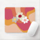 Design rétro coloré Abstrait avec fleurs fleuries et décoration des vagues jaunes, oranges et roses sur arrière - plan rose pastel