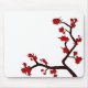 Une image graphique de Sakura avec les fleurs rouges lumineuses et le tronc noir sur un mousepad blanc