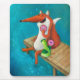 Tapis De Souris Fox amical et poulet mangeant des butées toriques