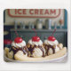 Une délicieuse cascade de banane est présentée avec trois boules de glace à la vanille bercée de sirop de chocolat et parsemée de noix, garnie de crème fouettée et de cerises