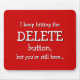 A delete button with super powers, but it never really seems to work... This mousepad has the texte "I keep hitting the DELETE button, but you're still here..." et it refers to that magic delete button we all wish we had from time to time. Too bad it seems broken most of the time. Le texte est dans le blanc, la black shadow. Le background est "stop-red", i.e. red as in a stop sign. The mousepad is customizable so change the color from red to whatever suits your customized mousemat. C'est le moment de l'amour pour le texte, c'est le moment de changer d'avis à l'anything you like. Perhaps "delete key" suits your better, or just anything else. Adding a picture would of course donc make it more personal and special. It could be a fun present to the nerdy or confused computer geek or perhaps your average ado... ;) There are some variants of this funny mousepad., for example its older sibling, the mousepad with the texte "I keep hitting the ESCAPE button, but i'm silencieux "pick and choose the sust sust"