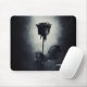 Un mousepad sombre et mystérieux avec une illustration cool d'un rose noir style goth/emo avec du sang coulant rouge sur ses pétales. Un arrière - plan noir grunge avec une couleur blanc cassé au centre qui met en évidence ce rose moody et macabre.