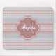 Un chic motif mousepad gris et rose pâle en tricot rayé avec un badge en monogramme couleur rose cendré en quatrefoil. Personnalisez en ajoutant votre nom et votre initiale monogrammée. Il fait partie de la collection de monogrammes de Motif de knit de Harbour Mist Rose. Image à tirage plat, Dentelle NON tricotée.