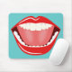 Tapis de souris à grande bouche - © Sunny Mars Designs. Ce pavé de souris cool, personnalisé, amusant, humoristique, moderne, de bureau ou à la maison présente un drôle de vectoriel de dessin animé d'une grande bouche rouge vif et large grinning, avec un sourire gagnant, des lèvres rouges succulentes et des dents blanches parfaites, avec les mots "That Tickles! !" sur le dessus pour indiquer que la bouche sepad est chatouilleuse tandis que la souris roule dessus. Parfait pour les dentistes ou les produits promotionnels pour un cabinet dentaire ou juste pour le plaisir! Personnalisez-le en ajoutant votre nom ou votre texte ou en l'achetant tel quel. Les sections ci-dessous contiennent d'autres articles de papeterie, de marketing et de promotion pour les dentistes :