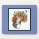 Hérisson géant avec grand bouquet de pavots et marguerites, papillons bleus. Arrière - plan bleu