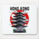 Logo rétro de Hong Kong avec un temple asiatique traditionnel.