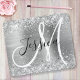 Parties scintillant en argent brillant et brillant sur les bords supérieur et inférieur, sur un faux métal brossé gris argenté ou en acier inoxydable style feuille ombré. Le monogramme présente un élégant combo de calligraphie noir et blanc. Customisez les styles de police pour créer votre propre design. Les couleurs principales sont gris argenté, argenté, noir et blanc.