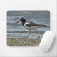 Un huîtrier américain marchant le long du rivage aux bleus subtils et aux bruns.