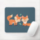 Une mousepad avec une illustration graphique de 2 renards oranges à l'air mignon et heureux.